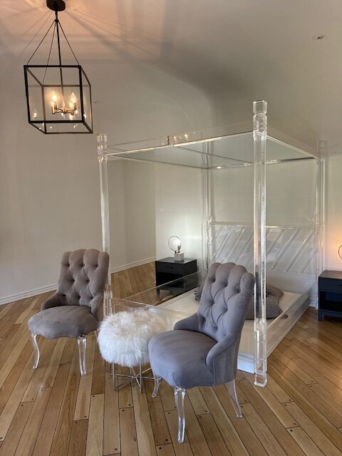 - Vintage Four-Poster Lucite Full Bed Frame