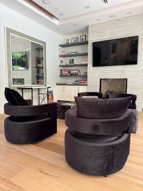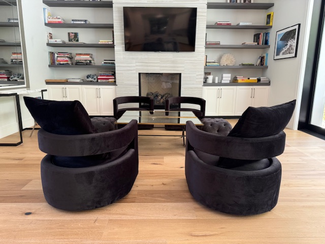 Meridith Baer Black Velvet Swivel Barrel Chairs (4)